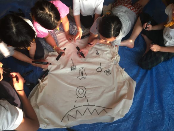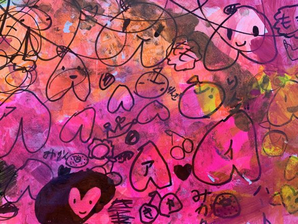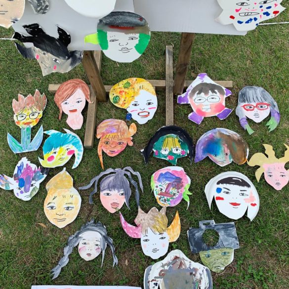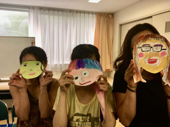 子どもたちと(一部オトナも)お面を作るワークショップセッションを開催。