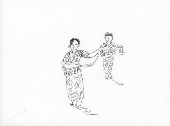 イラストレーターの小池アミイゴさんの素朴な鉛筆スケッチが、天草に流れる飾らない時間に似合うと思いました。