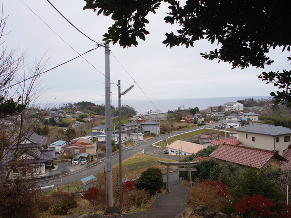 道の途中、海抜30mあたりでも「さらに上へ」の津波避難の指示。
