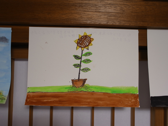 お孫さんにプレゼントする向日葵の花の絵、