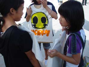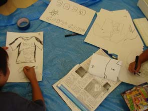 まずはヒトリヒトリのデザインをTシャツにマーカーで描いてみよう!