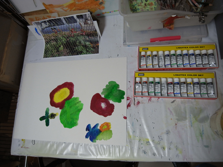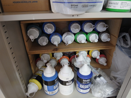 ペインティングにはリキテックスのアクリル絵の具を準備。
