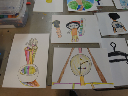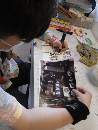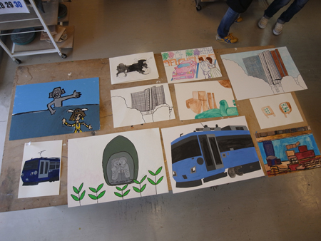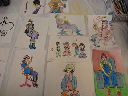 今回は、まずは前日に生まれた何枚ものドローイングから、