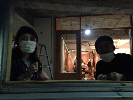 (写真右パドラーズの加藤くん、左は新スタッフのReikoさん。開店間に合うのか!?)