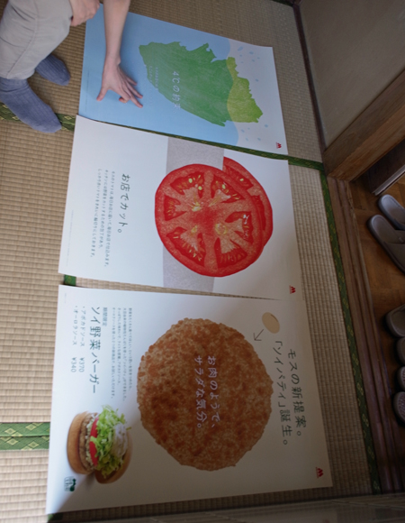 木版によるリアルなパンや野菜やハンバーガーは
