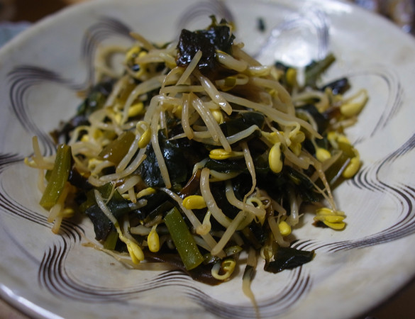 豆もやしと一緒に酒と醤油で味付けしただけなんだけど、