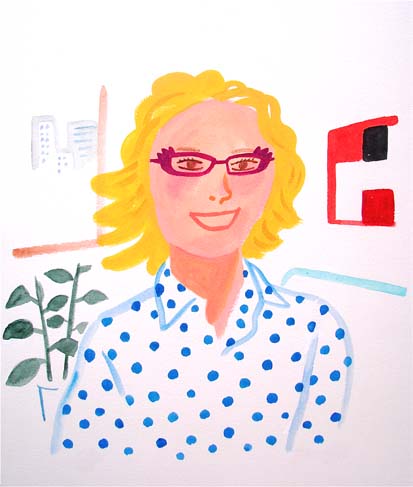 下描き無しの自由な線に水彩で着色。