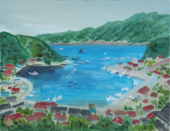 アップした絵は以前描いた気仙沼唐桑の鮪立(しびたち)の集落と漁港。