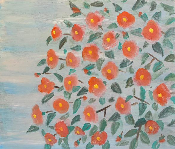 しょうがねえ、2年前に群馬で見たツバキの花を描きました。