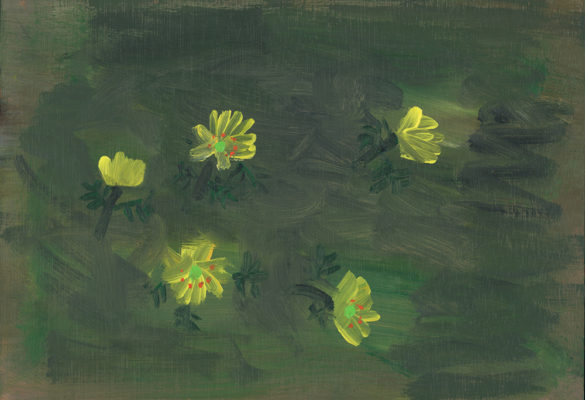 先日雪の降る福島県奥会津の昭和村で見た福寿草を描きました。