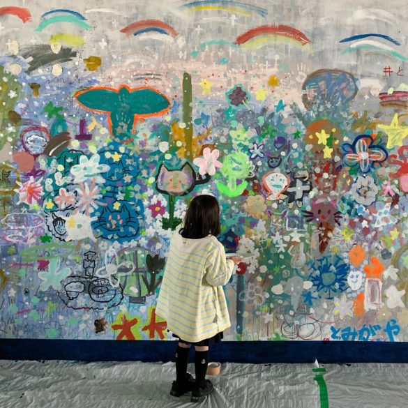 通りがかりの子どもたちが我慢できず壁面にキラメキを足してくれたり、