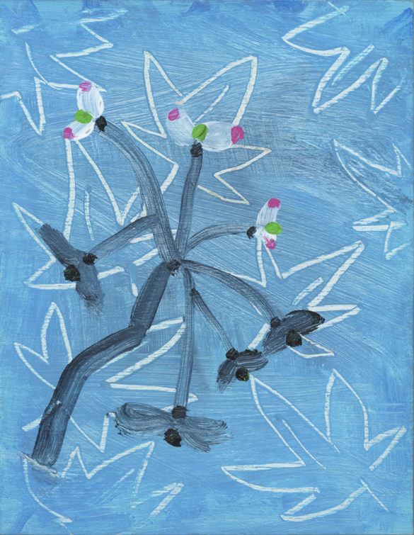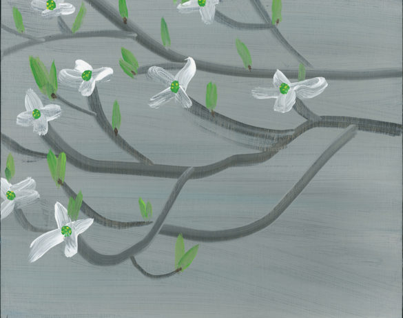 昨日の矯正歯科の帰りに息子と見たハナミズキの花を描きました。