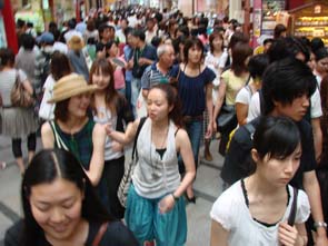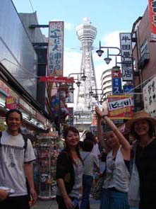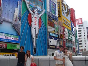 大阪の人間交差点の真ん中に立ち