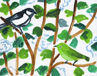 メジロとシジュウカラを描いてみました