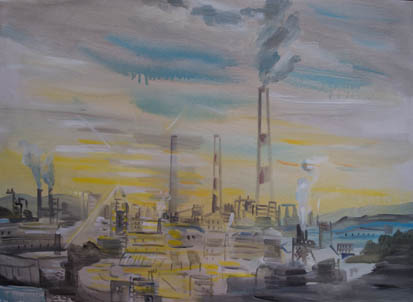 工業地帯・・・・ 私はじっと見ているのがすきなのですが こんな色彩で表現されるのですね。 アミイゴさんのこちらよりの色も とてもいいのですねえ・・・