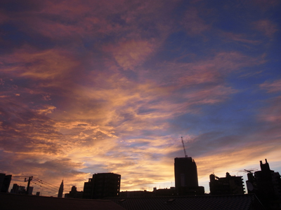 明け方の東の空は見事な朝焼け
