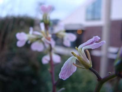 せっかく咲いたラディッシュの花も縮こまってしまいました。
