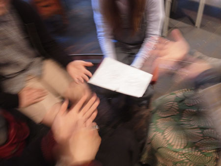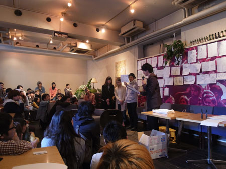 参加69名が男女2名ずつ4人ひと組のグループに別れ