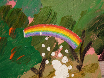 ピンク色のおうちの絵が、