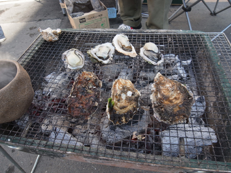 その脇では三陸産の焼き牡蠣を100円で頂いて