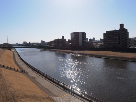 赤羽岩淵水門手前から荒川の土手を北から南へ下り