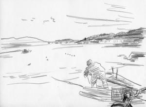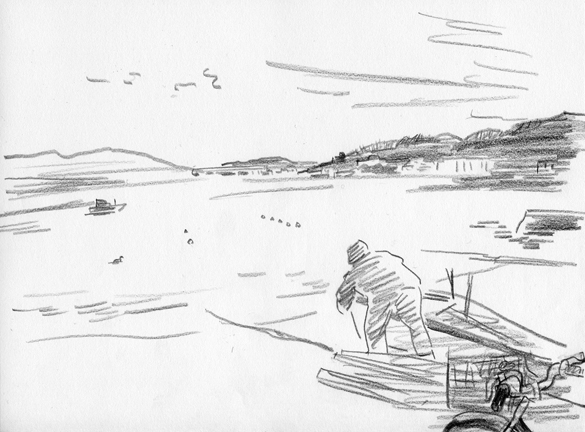 色鉛筆の黒でフリーハンドで描写
