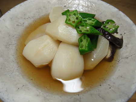 別々に炊いたオクラとシイタケもまずまずの出来でした