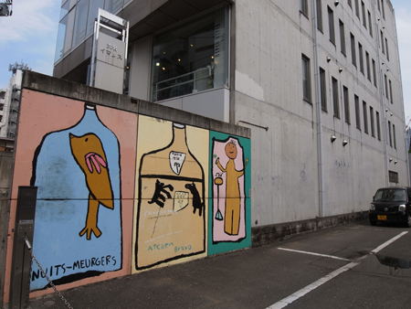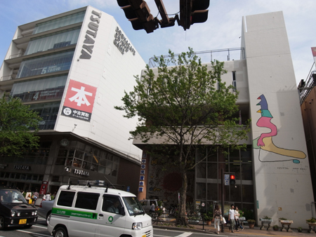 それでも残された壁画は入り路地の入り組んだ天神地区のランドマークとして機能。