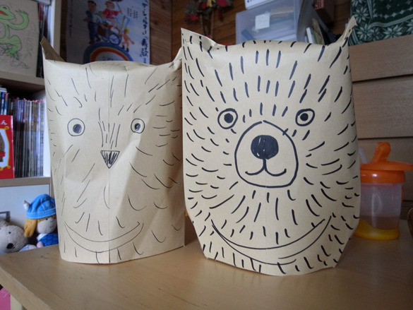 A4のジム袋で作った「フクロフクロウ」と「フクログマ」
