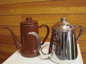 茶色いヤツは先代のポット。