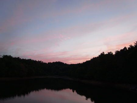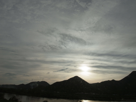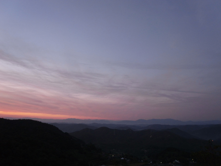 夕暮れ色に染まってゆく中国山地のなだらかな山々の稜線を眺め、